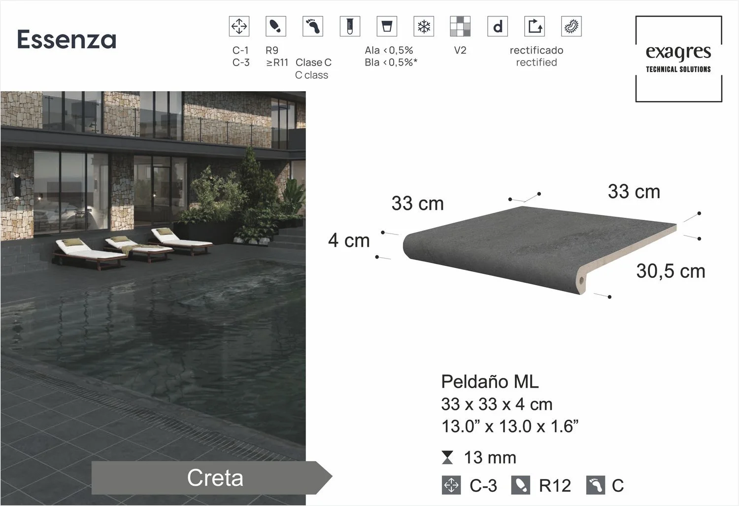 PELDANO RECTO 33×33 ESSENZA GRAFITE